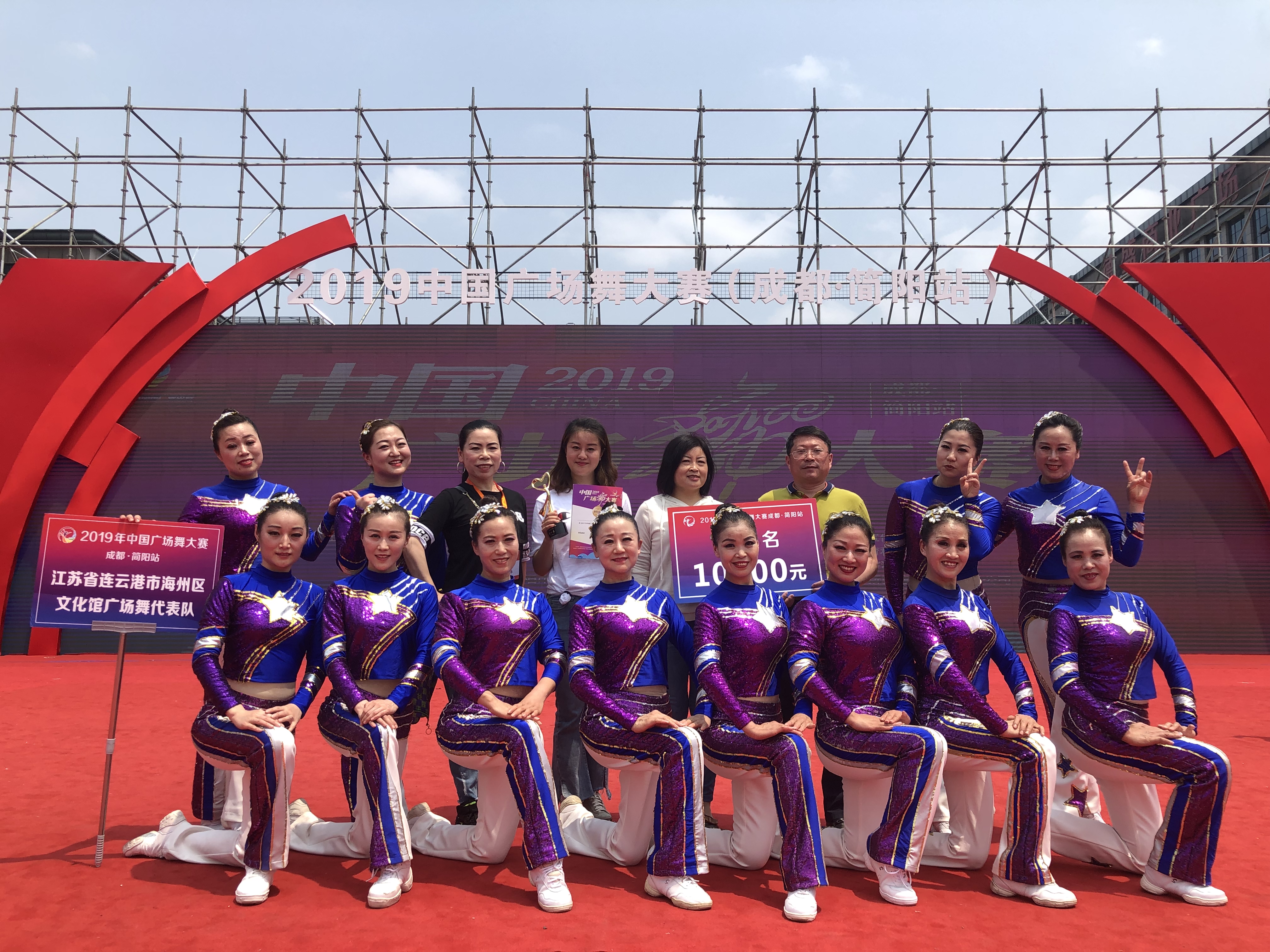 4月26日,由国家体育总局社会体育指导中心、全国广场舞健身活动推广委员会、成都市体育局、简阳市委、简阳政府主办的2019年中国广场舞大赛首站分站赛在成都简阳市隆重开幕,来自全国各地的40支队伍参加了比赛,江苏省连云港市海州区文化馆广场舞代表队以自选套路第一、规定套路第二的骄人成绩荣获总成绩第一名,获得了2019中国广场舞大赛总决赛的首张入场券。